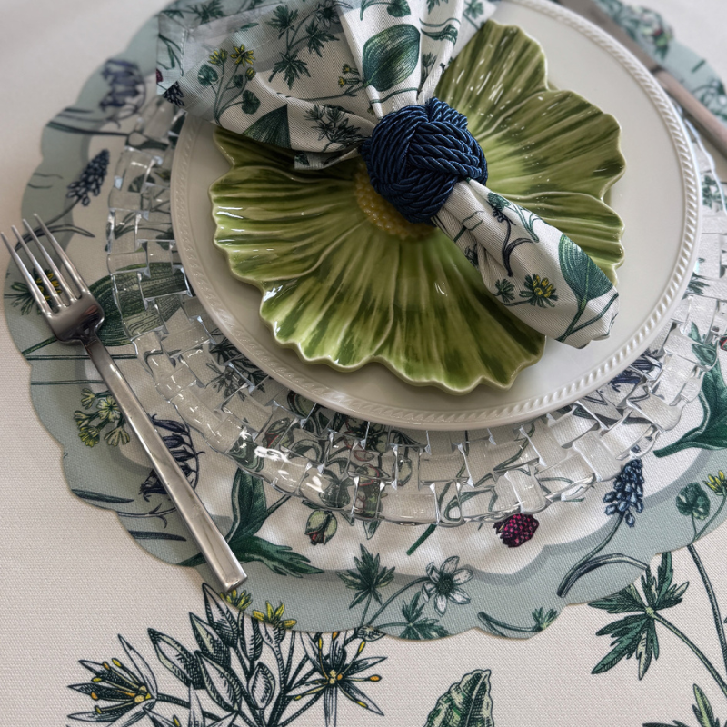 Individual troquelado redondo en tela Hojas Borde Verde